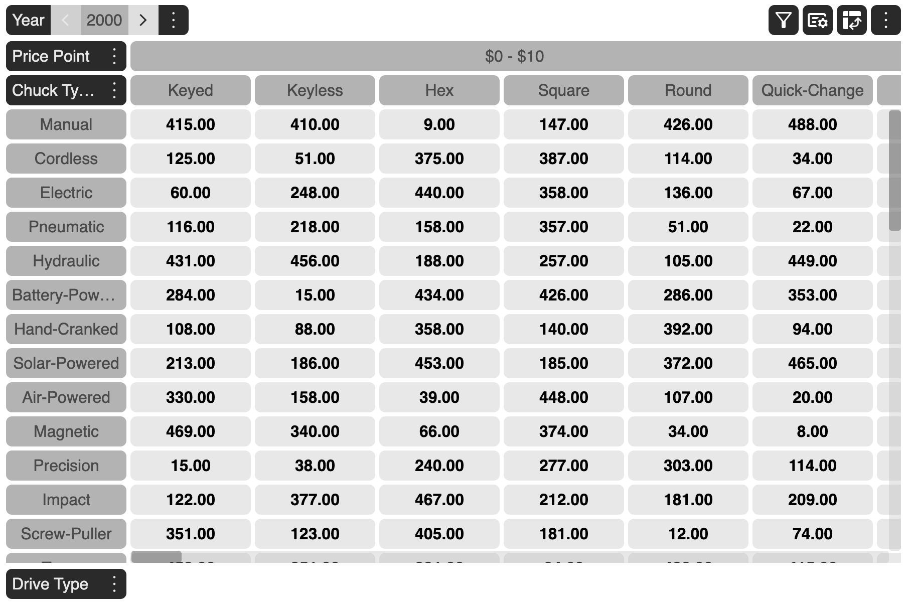 The MDCGrid, Multi-dimensional Cross Attribute Grid is a high performance, feature rich, JavaScript Multi-Dimensional Grid that organizes layout by dimensions and has the ability to present related information in a single cell.